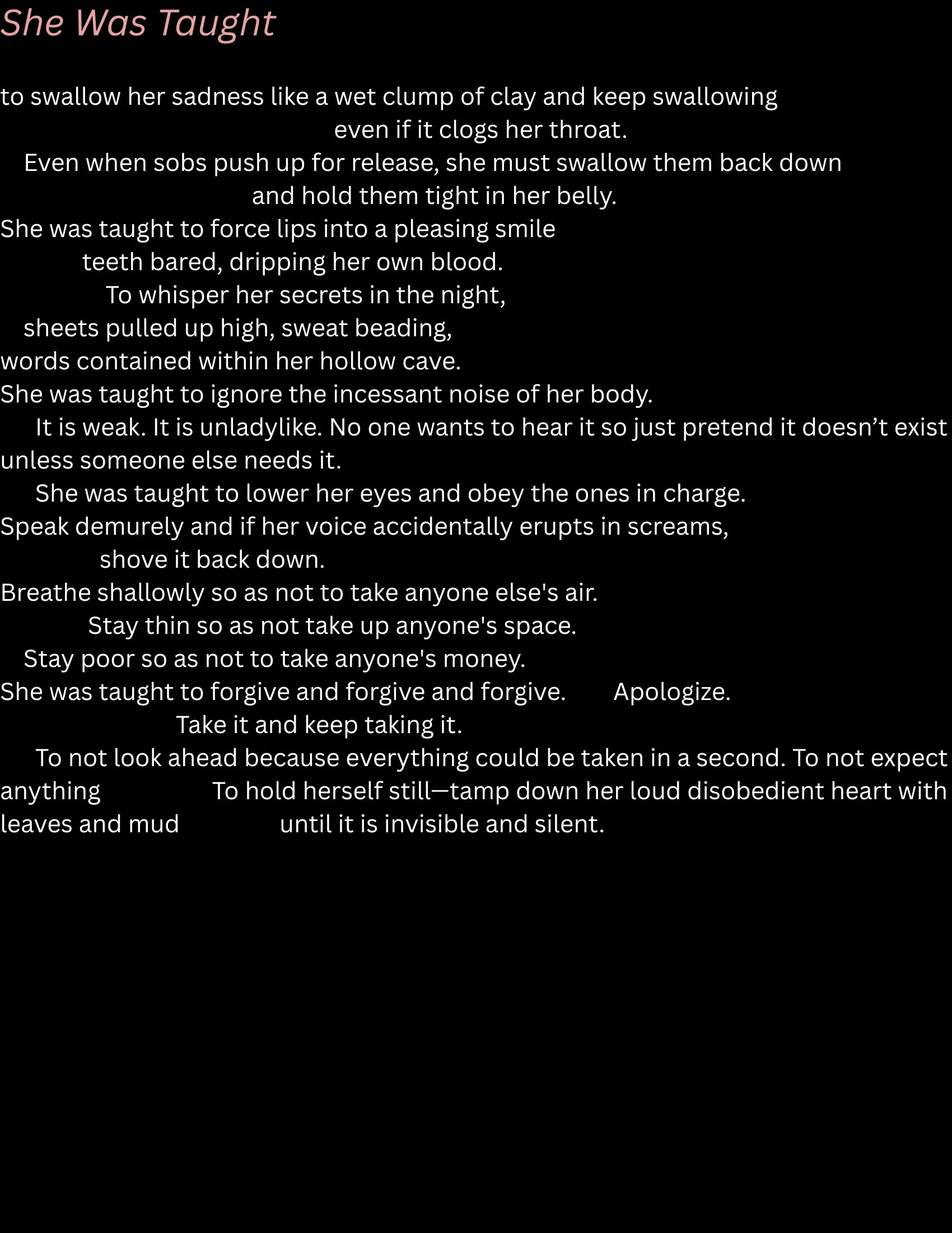 Kristi Joy Rimbach (she/her) writes poetry and creative nonfiction about her fumbling human journey. Her work can be found in “Here: A Poetry Journal”, “Flare Lit”, “Wild Roof Journal” and elsewhere. She lives in a small town in Connecticut with her husband and their three kids, two dogs, and a cat.